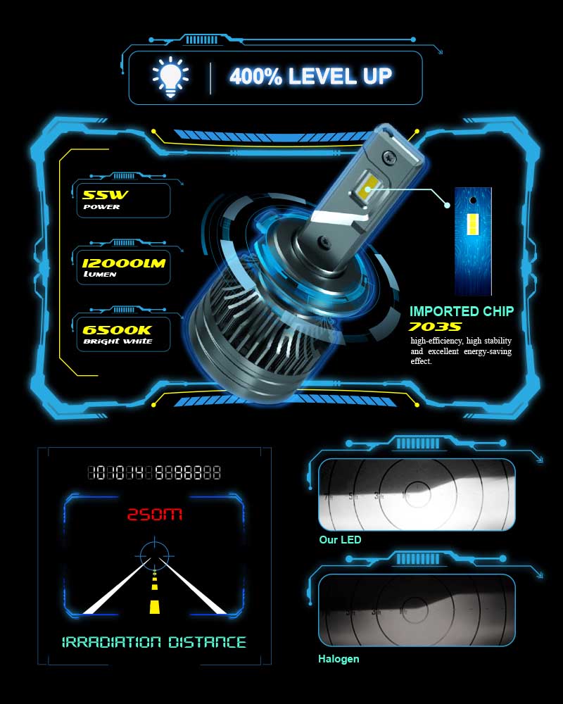 Better& Safe visibility O3 LED Headlight Bulb come with extremely bright CSP chips, adjustable 360°rotary buckle to get the best light beam pattern by simple rotary.No dark spot.
