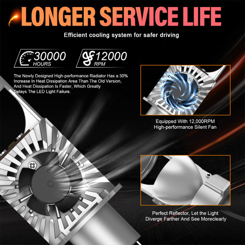 This is Upgraded model of turbo led headlight kit with CSP Flip chip, here are advantages: