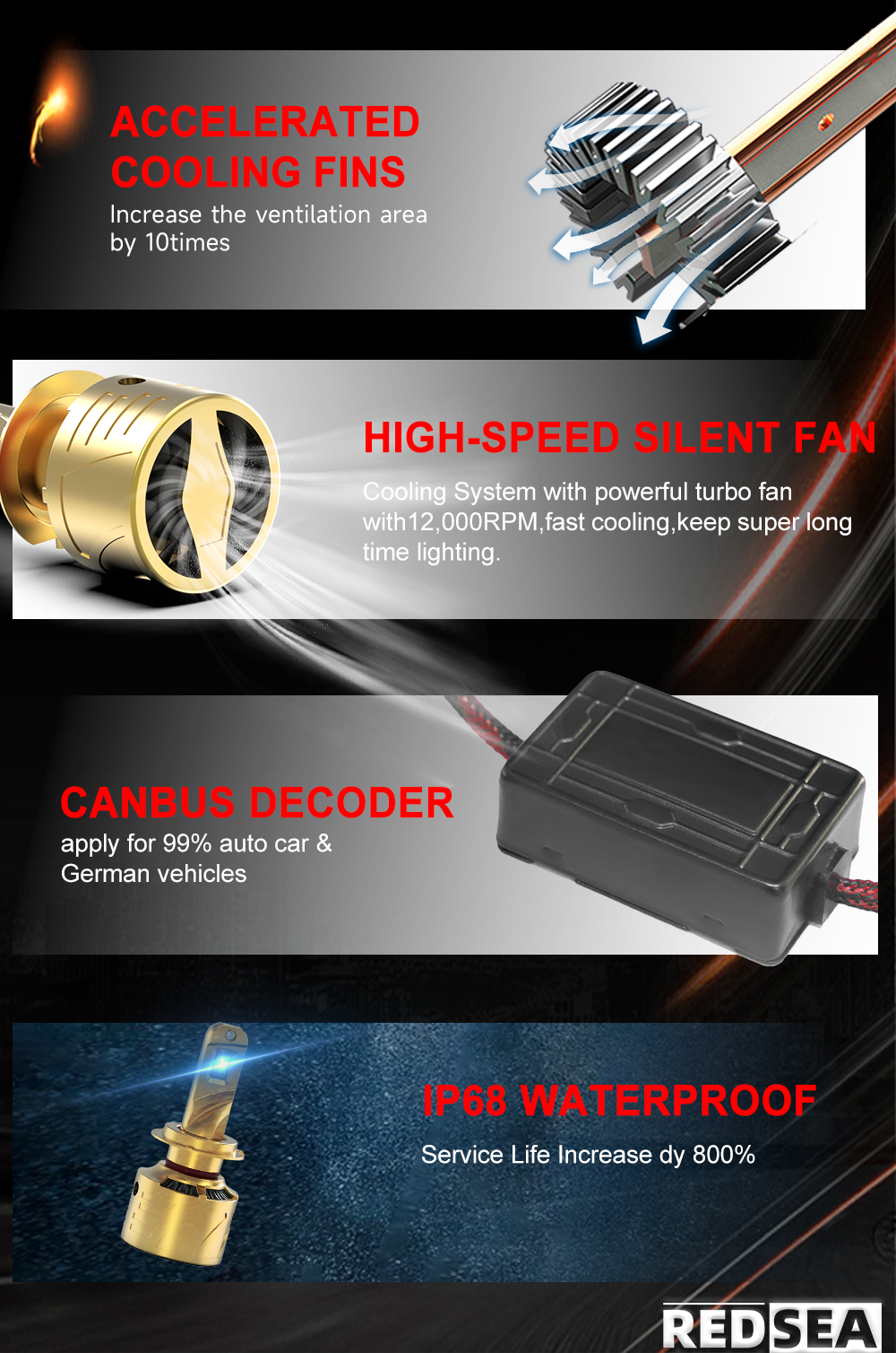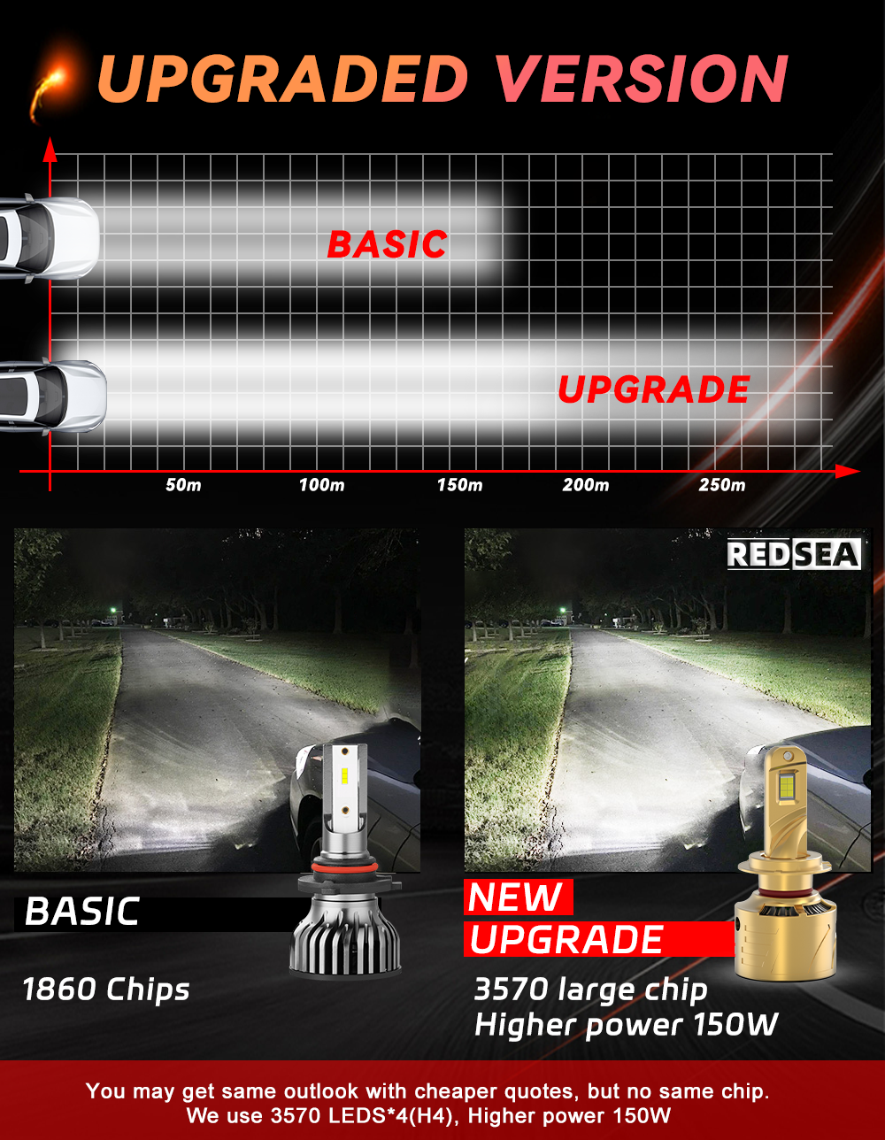 This is Upgraded model of turbo led headlight kit with CSP Flip chip, here are advantages: