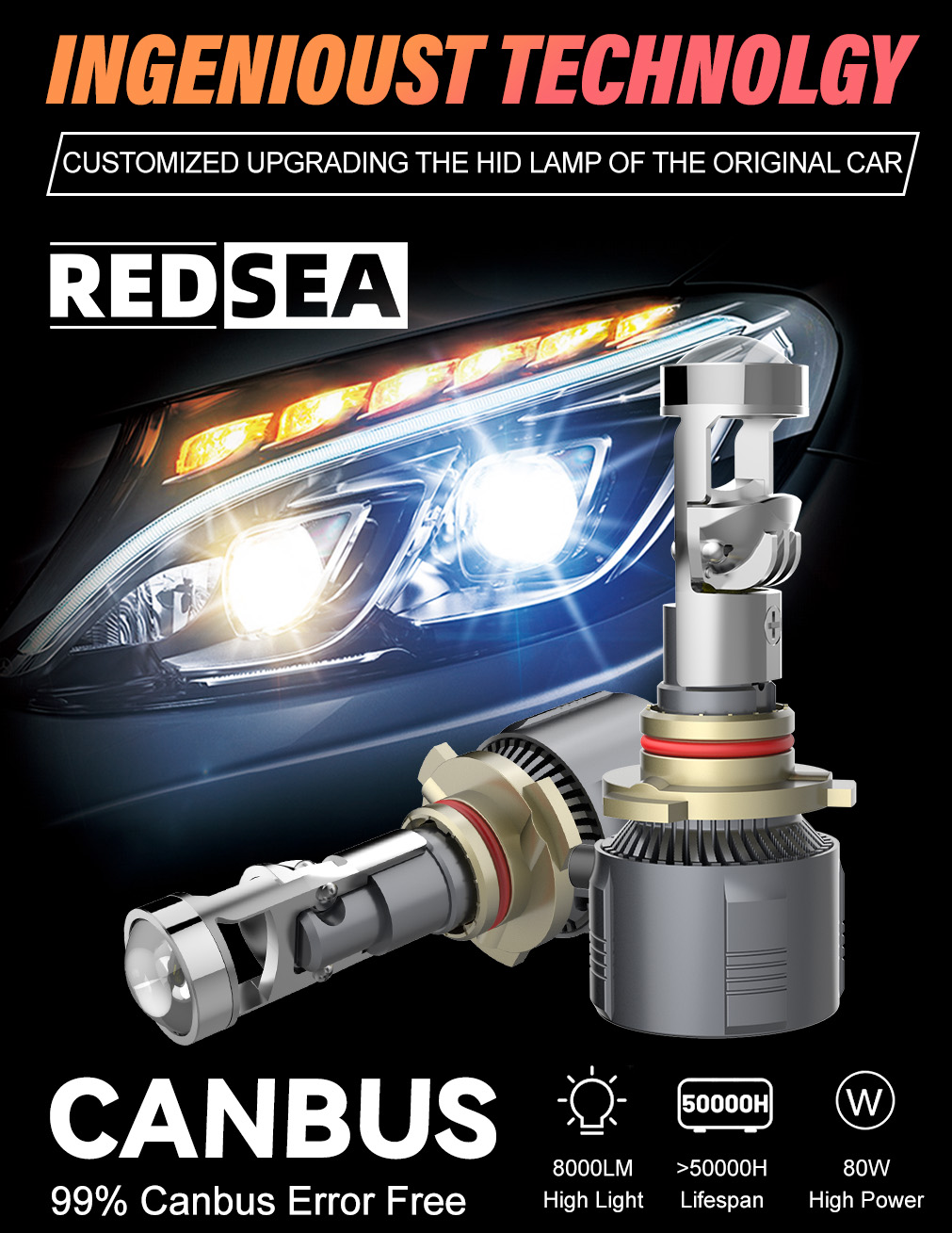 This is Upgraded model of turbo led headlight kit with CSP Flip chip, here are advantages: