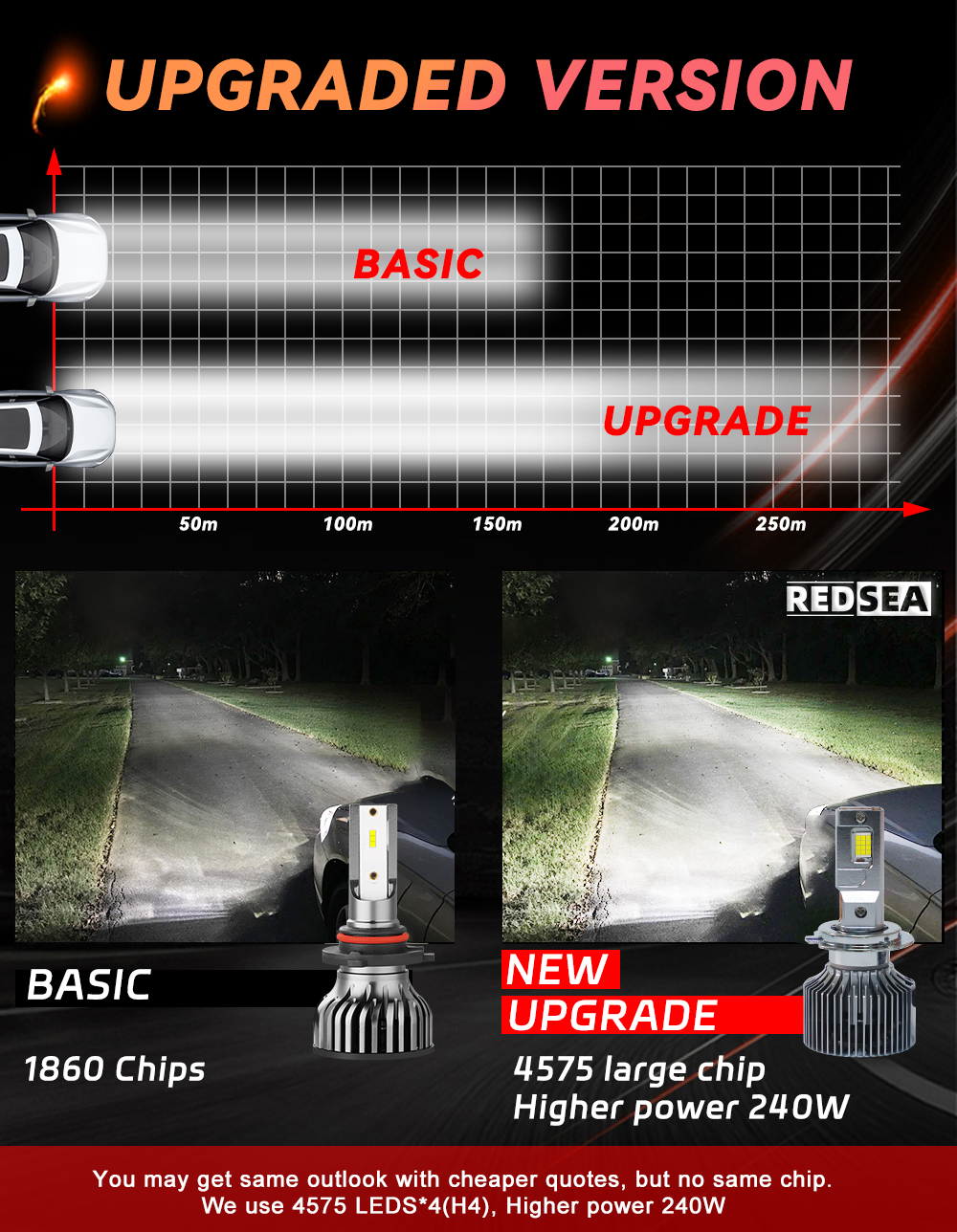 This is Upgraded model of turbo led headlight kit with CSP Flip chip, here are advantages: