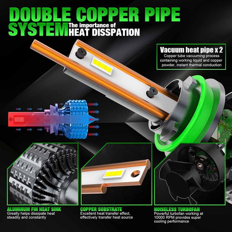 Better Cooling & Longer Lifespan Led headlights bulb with high speed mute fan (12000R/Min) system keep the light bulb in appropriate working temperature; Aviation 6063 aluminum profile as heat conduction system,360° heat radiating ensures maximum heat dissipation and prolongs lifespan over 50000hrs lifetime.
