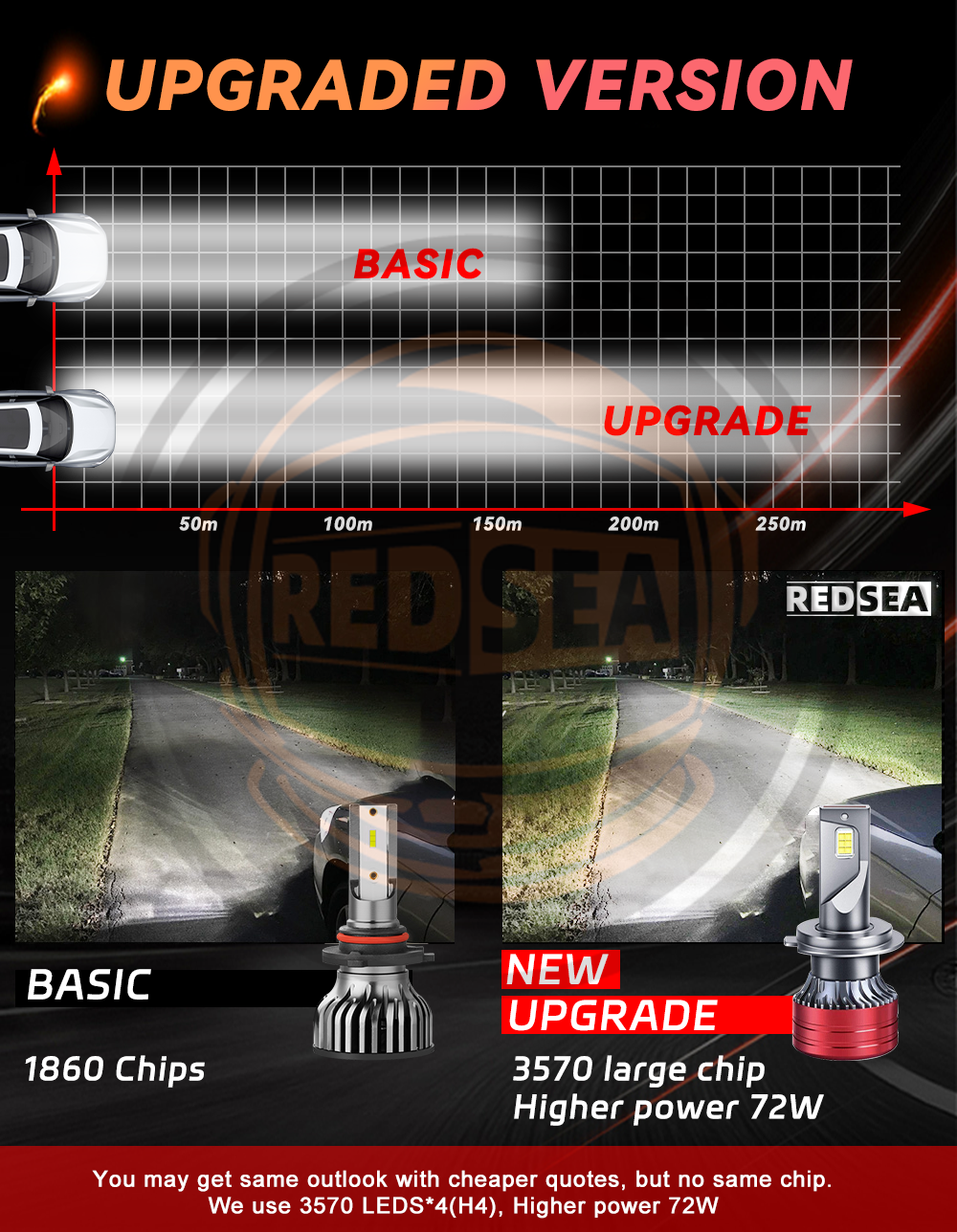 This is Upgraded model of turbo led headlight kit with CSP Flip chip, here are advantages: