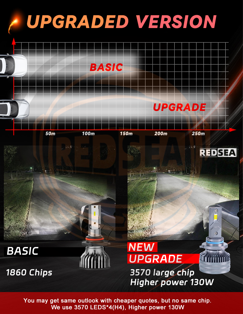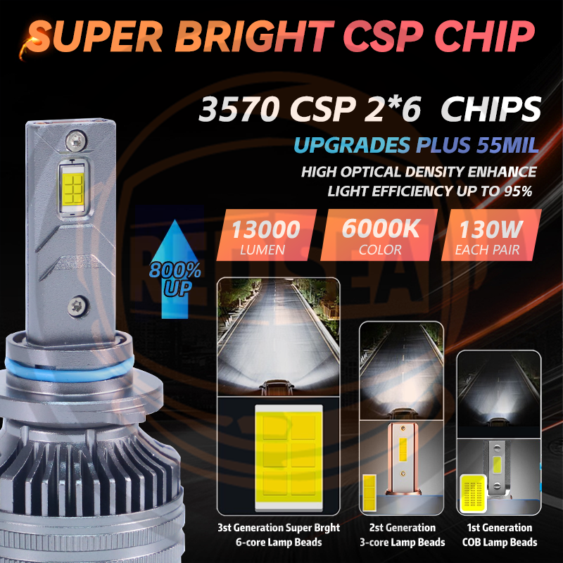 This is Upgraded model of turbo led headlight kit with CSP Flip chip, here are advantages: