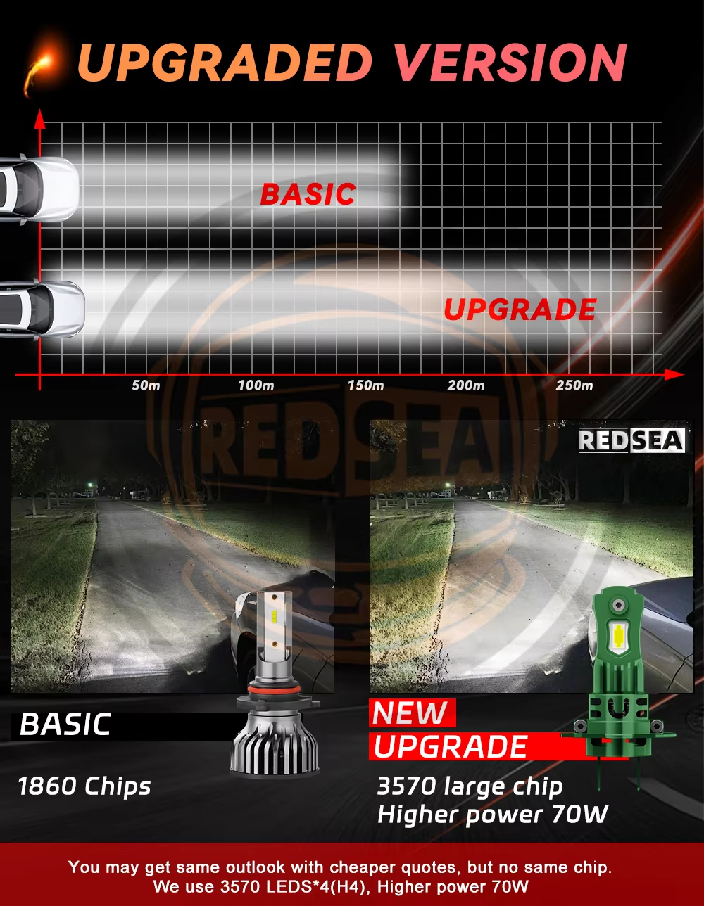 This is Upgraded model of turbo led headlight kit with CSP Flip chip, here are advantages: