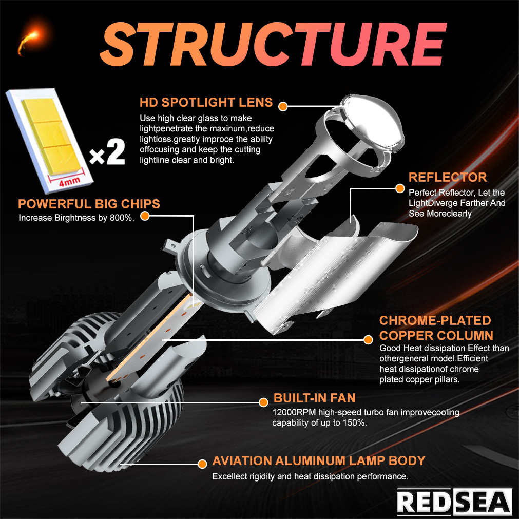 This is Upgraded model of turbo led headlight kit with CSP Flip chip, here are advantages: